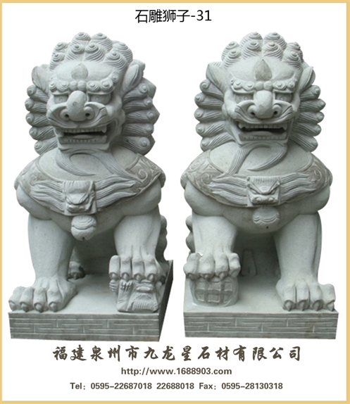 就是用石頭雕刻出來的獅子,是在中國傳統(tǒng)建筑中經(jīng)常使用的一種裝飾物。在中國的宮殿,寺廟,佛塔,橋梁,府邸,園林,陵墓,以及印鈕上都會(huì)看到它。但是更多的時(shí)候,“石獅”是專門指放在大門左右兩側(cè)的一對獅子。石獅不僅有不同的時(shí)代特點(diǎn),還有明顯的地域特色??傮w上,北方的石獅子外觀大氣,雕琢質(zhì)樸;南方的石獅更為靈氣,造型活潑,雕飾繁多,小獅子也不僅在母獅手掌下,有的爬上獅背,活潑可愛。
