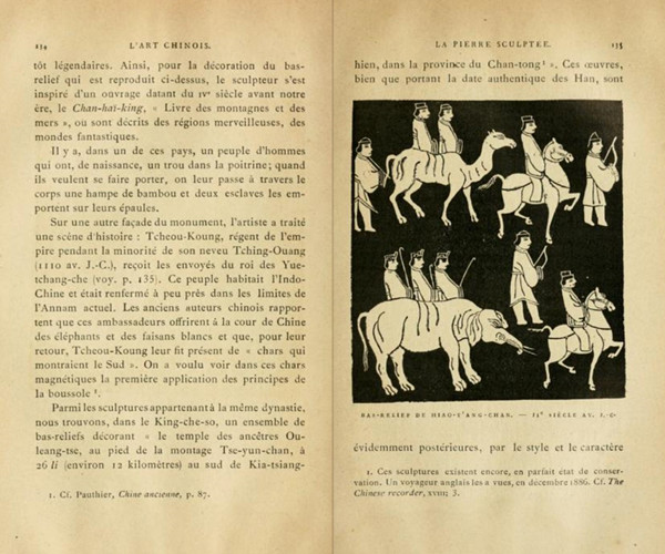 Paléologue《中國藝術(shù)》一書中的孝堂山拓片插圖。圖片來源:Paléologue, Maurice, “La Pierre Sculptée”, L'art chinois, 1887 (Paris : Maison Quantin), pp.134-135.