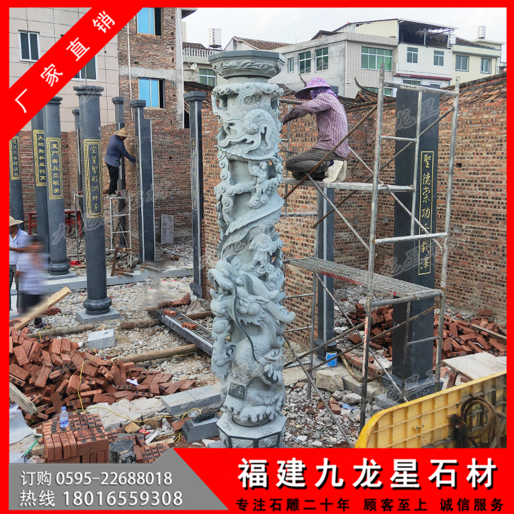 - 2022-08-19 羅源青石雕龍柱 寺院盤龍柱雕刻