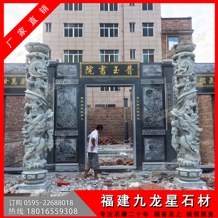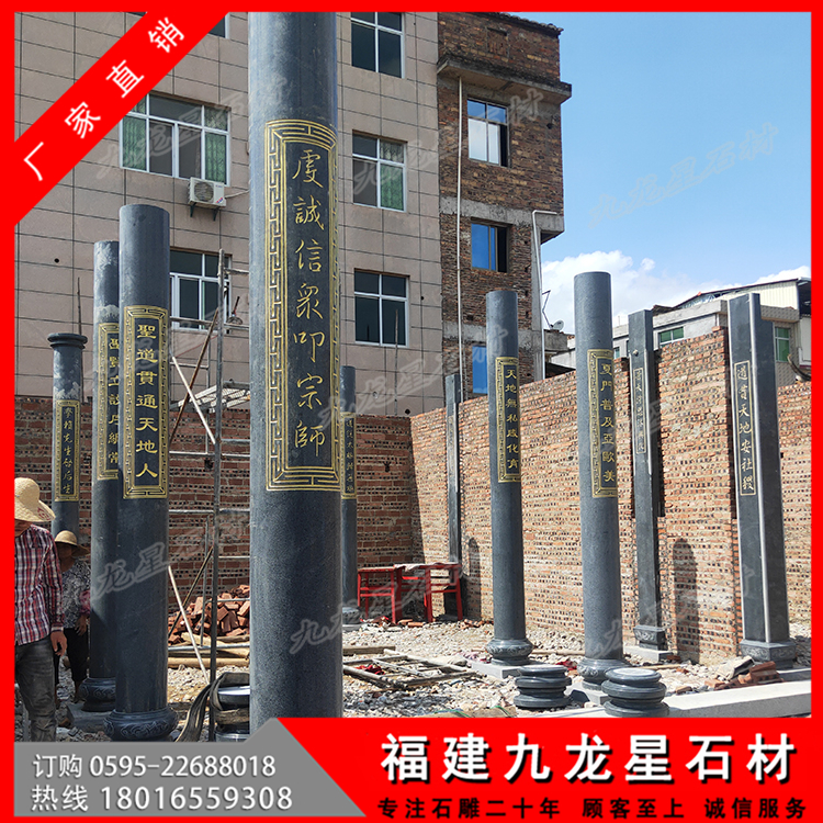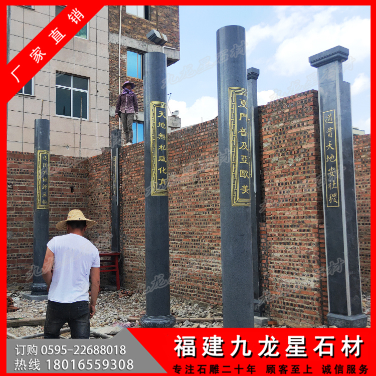 莆田普玉書院芝麻黑石材圓柱 青石雕龍柱
