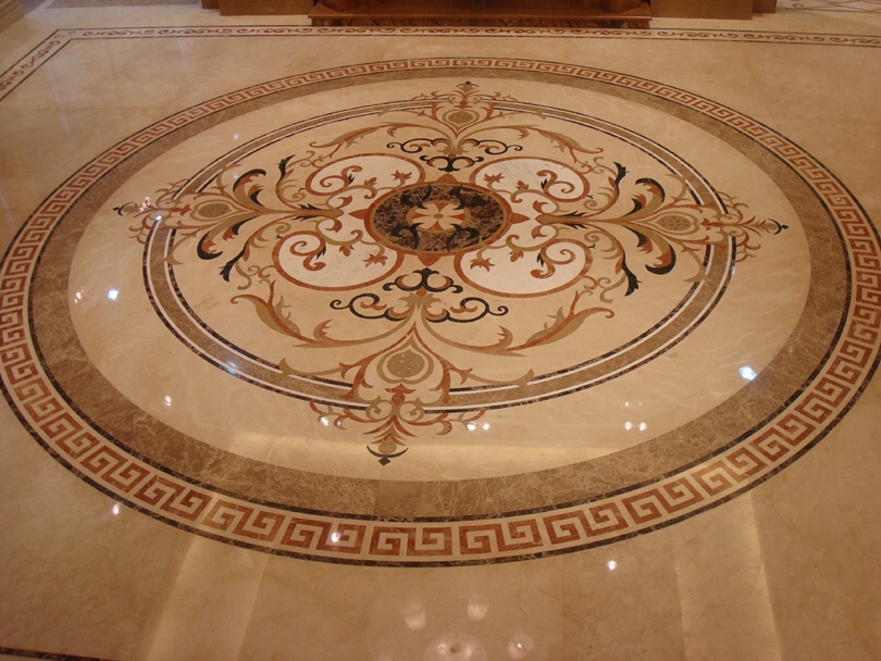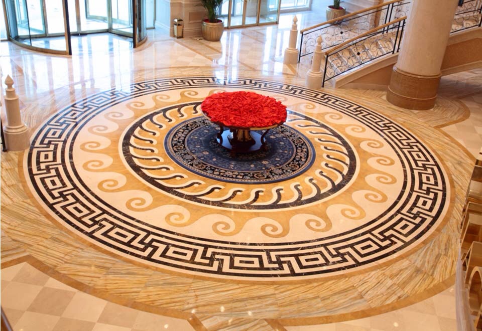 大理石拼花石材拼花,其實可以看做是馬賽克工藝的一種發(fā)展和延伸,是馬賽克工藝和新的加工工藝和技術相結合的而衍生出的新的石材產品。像早期的石材拼花,主要是石材板材類產品的拼組,這可以看成是放大版的石材馬賽克,而后期由于水刀技術的應用和加工精度的提升,石材拼花把馬賽克的鑲嵌工藝發(fā)揮到了極至,形成了自己獨特的風格。不過在國外石材拼花還是屬于石材馬賽克的范疇的。