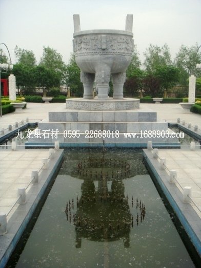 福鼎:用料為大石窩艾葉青石,沿基座通高6.6米,共重60噸。由20余名工匠歷時(shí)百日雕刻而成。象征天、地、人三泰。
