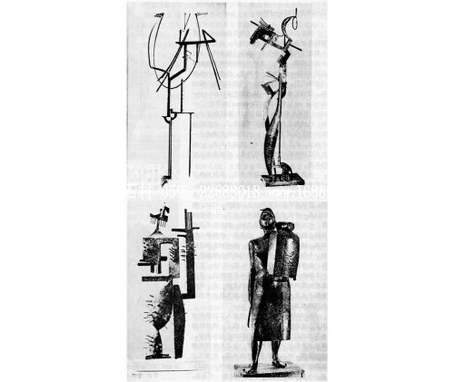岡查列茲卻為擺脫畢加索的影響,找尋新的表現(xiàn)方式而努力。他宣稱:“借用新的手段,向空間凸出,用空間來描繪它;利用空間,并在空間進行設(shè)計,這樣,空間就好象是一種新發(fā)現(xiàn)的材料——這便是我的全部努力”。(5)