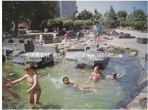 約阿希姆.施梅托在柏林市中心的設(shè)計也是一個給人留下深刻印象的作品。他利用高程的變化,造成空間形體的豐富變化,而且還形成多種形式的水體造型,將塑造的、建筑的、環(huán)境的以及自然的復(fù)雜要素揉合在一起。他對造型的設(shè)計、符號的運用、材質(zhì)的駕馭都別出心裁,足以令人流連忘返。