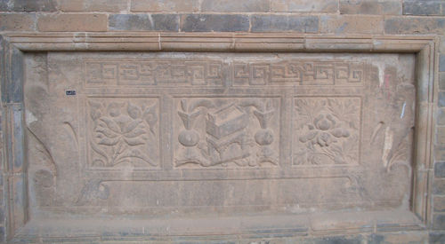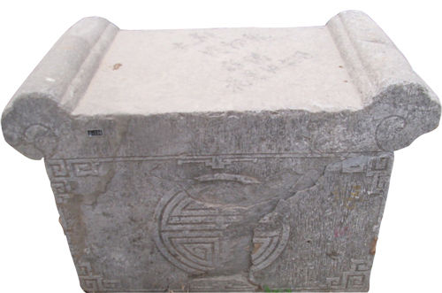 西安關(guān)中民俗藝術(shù)博物院收藏有一批明清及民國時(shí)期的石供桌,有分體式,也有整體式。其構(gòu)造可分為桌面、桌腿和裙面三部分。一般桌面兩端上翹,側(cè)面和正側(cè)面即裙面雕刻有紋飾。尤其是裙面紋飾頗為精彩,也是其精華所在,反映了當(dāng)時(shí)的石雕藝術(shù)。