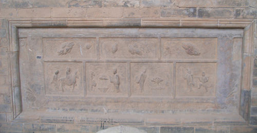 清孝子故事石供桌座(圖14) 高67厘米,長(zhǎng)130厘米,寬63厘米。