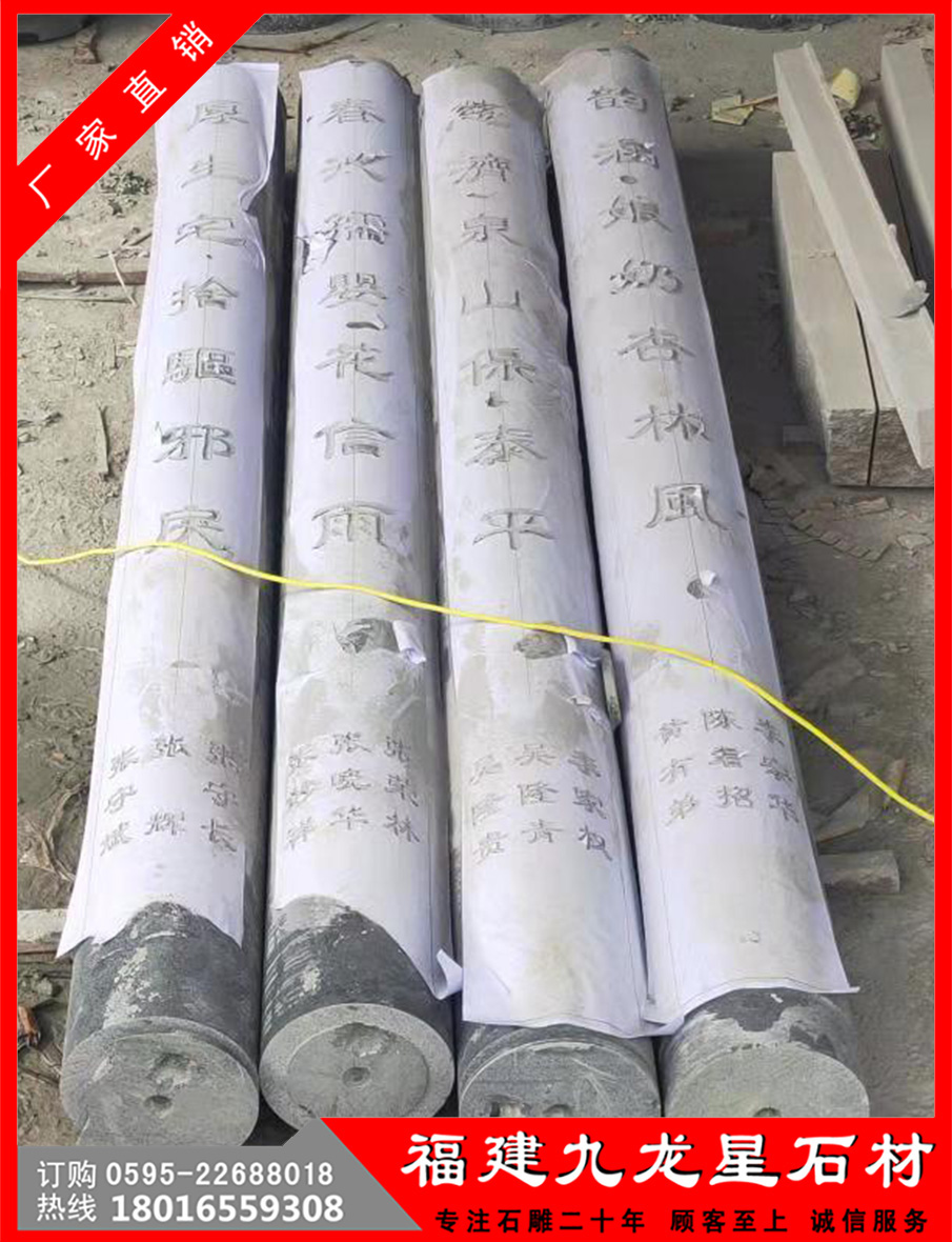 人類沒(méi)有任何一種重要的思想不被建筑藝術(shù)寫(xiě)在石頭上。當(dāng)我們想起過(guò)去的偉大發(fā)明時(shí),我們有一種習(xí)慣,就是應(yīng)用看得見(jiàn),有紀(jì)念性的建筑作為每個(gè)文明獨(dú)特的象征。福建泉州市九龍星石材有限公司成立于2009年3月份成立,坐落于著名的“中國(guó)石雕之都”福建省惠安縣,是一家集研究創(chuàng)作、生產(chǎn)加工、安裝、銷售于一體的石材石雕專業(yè)生產(chǎn)型企業(yè)廠家。本公司秉承品質(zhì)第一,工藝第一,服務(wù)第一的經(jīng)營(yíng)理念,雕刻的產(chǎn)品能更好的呈現(xiàn)在你眼前。誠(chéng)信是我們一直以來(lái)的目標(biāo),我們一直把誠(chéng)信放在第一! 本公司提供簡(jiǎn)單的石雕柱子批發(fā),歡迎來(lái)電。