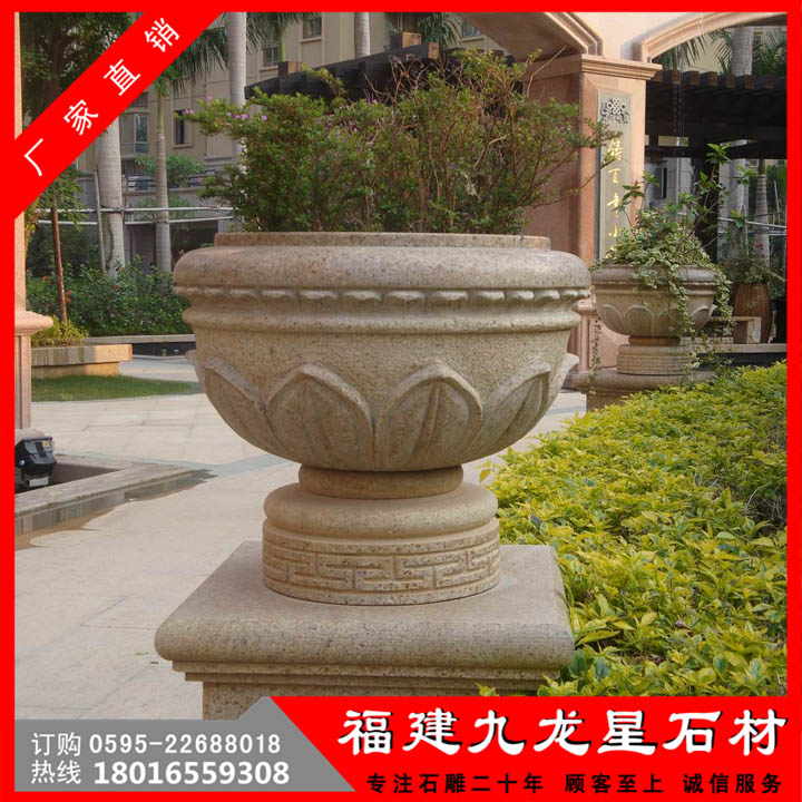 園林花缽石雕文化在中國的歷史上,有著很輝煌的歷史,它的美一直傳承到了現(xiàn)在,不僅是視覺上的享受,也是一種文化的熏陶!它采用天然石頭精雕細(xì)琢而成的石雕園林花缽。形態(tài)逼真,栩栩如生。適用于小區(qū),廣場,園林,酒店,學(xué)校,戶外園林景觀工程等場所。