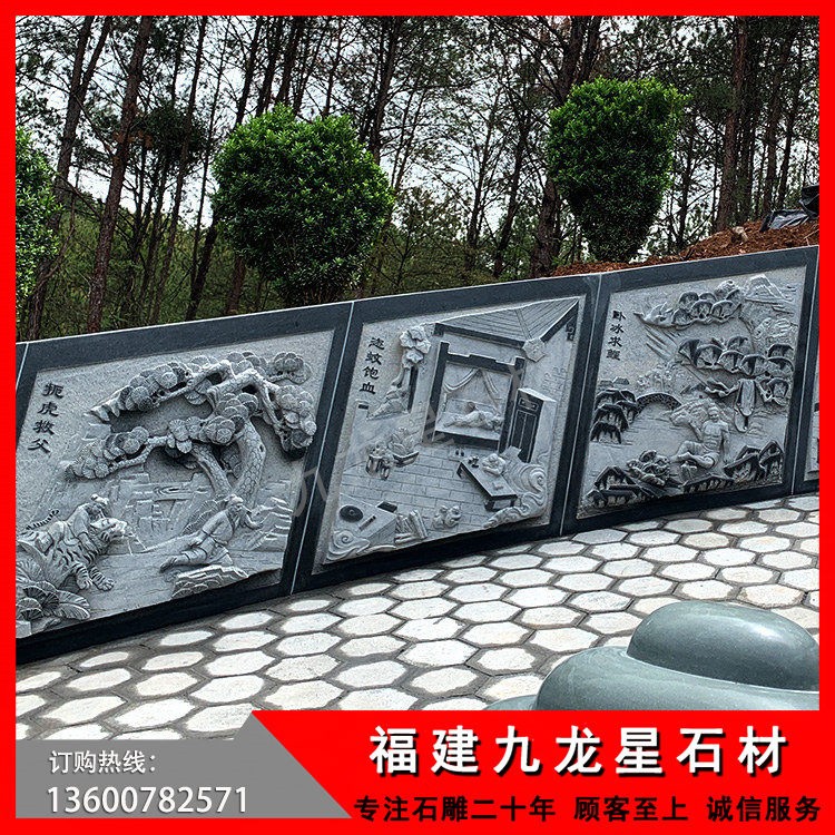 本公司做為此項目的承接方,從設(shè)計、雕刻、運輸、安裝施工一站式服務(wù),包含了涼亭、二十四孝浮雕,墓碑等整個工程。本套墓圍采用的優(yōu)質(zhì)的G654+青石,整個工程耗時三個多月,靠著過硬的產(chǎn)品質(zhì)量、細致的服務(wù)如期完成整套項目,深得客戶好評。