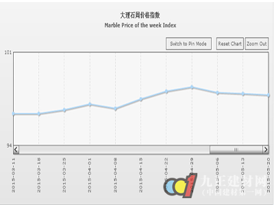 據(jù)“中國·水頭石材指數(shù)”系統(tǒng)監(jiān)測,20150520期石材周價格指數(shù)收報于98.63點,環(huán)比略上浮0.01點,上浮約0.01%。本周石材價格指數(shù)穩(wěn)中微升,其中大理石類價格小幅下滑,其他石材類價格環(huán)比持平,花崗石、合成大理石類價格均有所回升,本周石材價格總體走勢平穩(wěn)。大部分品類價格仍較穩(wěn)定,部分品種價格隨板面質(zhì)量及市場需求變化小幅波動調(diào)整。
