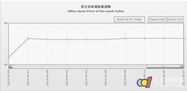 據(jù)“中國·水頭石材指數(shù)”系統(tǒng)監(jiān)測,20150527期石材周價格指數(shù)收報于98.71點,環(huán)比略上浮0.08點,上浮約0.08%。本周石材價格指數(shù)延續(xù)上周穩(wěn)中微升的趨勢、繼續(xù)微幅推升,其中其他石材類價格環(huán)比持平外,大理石、花崗石、合成大理石類價格均有所回升。大部分品類價格變化仍較穩(wěn)定,部分品種價格因市場需求有所增加及板面質(zhì)量差異小幅上揚。