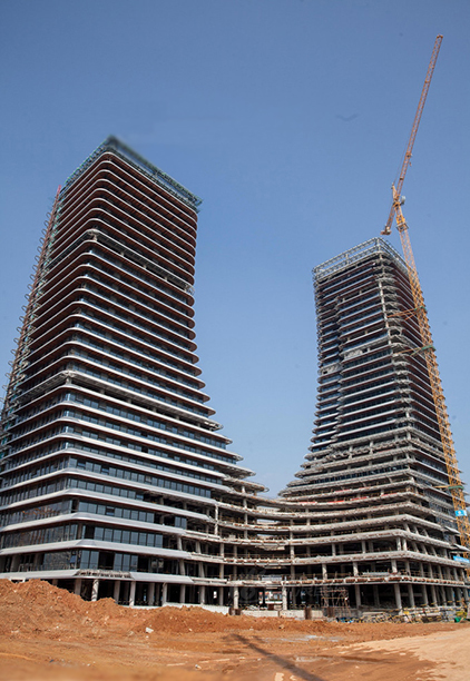 正在建設(shè)中的東南航運(yùn)總部大廈部分樓群來了個(gè)倒穿褲衩,又成為建筑史上一大亮點(diǎn)。