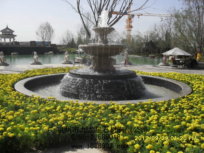 噴泉是園林中重要的組成部分。現(xiàn)代園林中,除了植物景觀外,噴泉也是重要的景觀,它既是一種水景藝術(shù),體現(xiàn)了動(dòng)、靜結(jié)合,形成明朗活潑的氣氛,給人以美的享受;同時(shí),噴泉還可以增加空氣中的負(fù)離子含量,起到凈化空氣、增加空氣濕度、降低環(huán)境溫度等作用,因此深受人們的喜愛(ài)。噴泉的種類(lèi)很多,根據(jù)材質(zhì)分為以下幾種:石雕噴泉、玻璃鋼噴泉、陶瓷噴泉、人造石噴泉、鋼管結(jié)構(gòu)噴泉等。其中石雕噴泉具有結(jié)實(shí)耐用、藝術(shù)價(jià)值高、造型美觀等特點(diǎn)應(yīng)用最為廣泛。