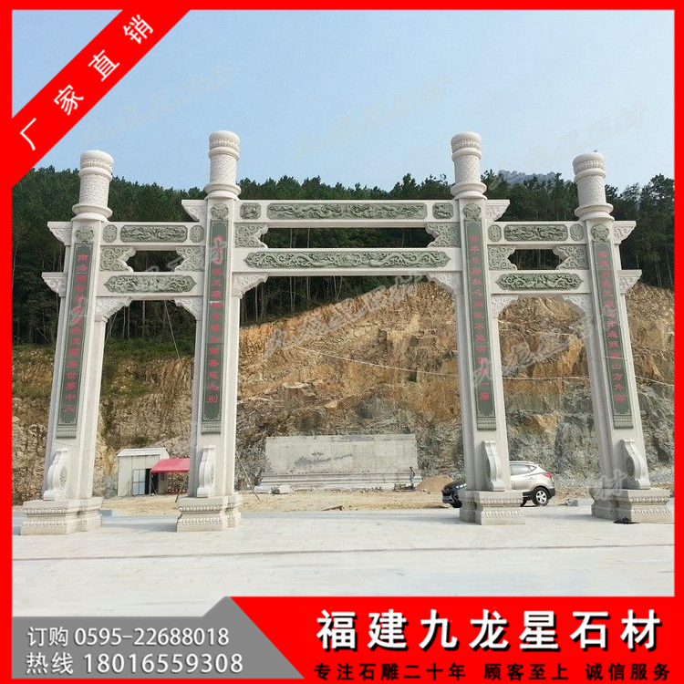 景區(qū)石牌坊大門對于風(fēng)景區(qū)來說,好比人的臉面,也最容易給人留下第一印象。景區(qū)石牌坊大門廠家的設(shè)計(jì)制作是游客進(jìn)入景區(qū)的第一個(gè)展示點(diǎn),雕刻精美的石牌坊、或者門樓建筑起到“流連忘返”的作用。所以,歷來眾多旅游區(qū)對門樓石牌坊的設(shè)計(jì)都極為關(guān)注。
