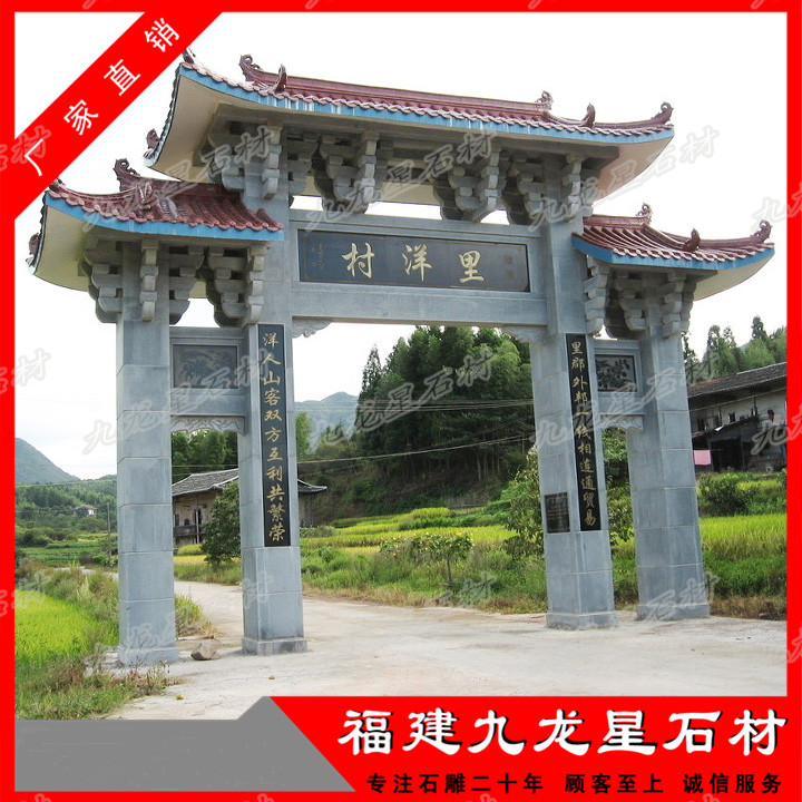 傳統(tǒng)村門口石牌坊雕刻技法的綜合運用,使得村門口石牌坊制作極其精美,使進村牌坊,村口牌坊設計效果圖具有強烈的層次感,產生變化多端的負空間。村口石牌坊 ...