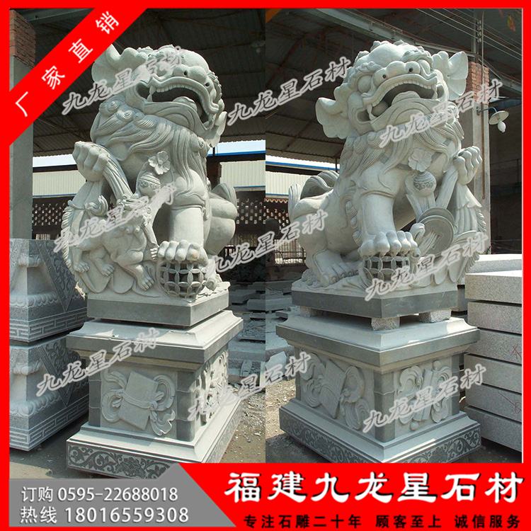 石獅子哪里有賣?找福建九龍星石材!對(duì)于不同的時(shí)期和不同的地域,石雕獅子廠家對(duì)石獅子雕刻也有著不同的特點(diǎn)。雖然整體來說,我國各代歷史上石獅子雕刻的形象都與石獅子其本身的形象不是完全符合。但是在漢唐時(shí)期,我們可以發(fā)現(xiàn)石獅子表情更加猙獰,體型更為彪悍,因此這一時(shí)期重點(diǎn)突出的大概是獅子兇悍的一面。到了元朝石獅子的四肢和軀干都要顯得更加痩長(zhǎng)一些,沒有那么虎背熊腰,可以猜想這一時(shí)期主要突出的是獅子孔武有力的一面。之后到了明清事情,石獅子雕刻的表情更加柔和,似乎暗示著它的性格要趨于溫順,同時(shí)這一時(shí)期針對(duì)石獅子的形象也逐漸定型,現(xiàn)在我們看到的石獅子雕刻基本上是明清時(shí)期的樣子。