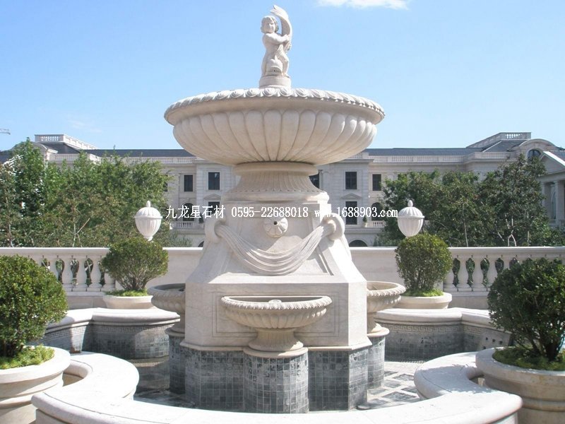 埃及米黃大理石水缽總高約3.6米,缽盤直徑為1.8米。